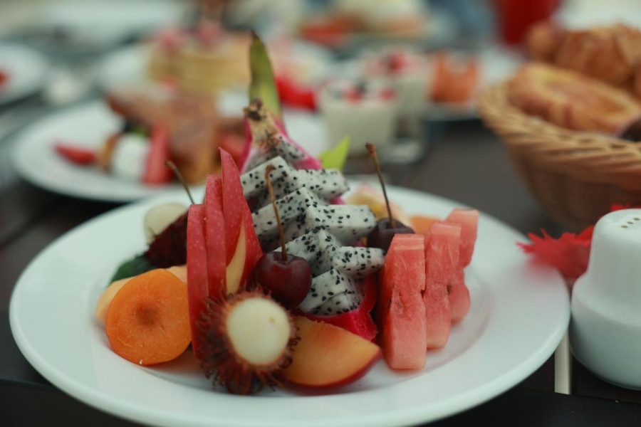 Еда вкусная , выбор большой. Фруктов мало, но мы больше по овощам, так что нам и тут повезло.
