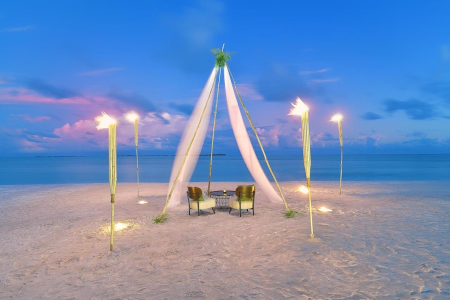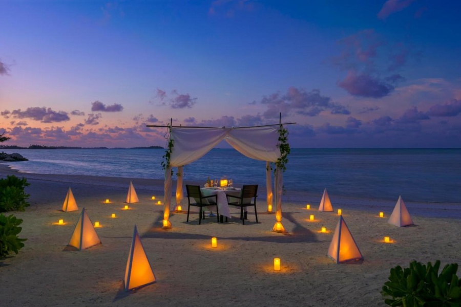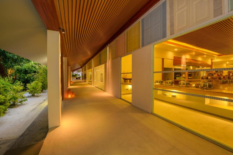 Итак, сам курорт описывают, как “Затерянный в Индийском океане”. Он находится на частном острове, до столицы Мале - 400 км. Расположено местечко на атолле Гаафу Даалу. Первое, что бросилось в глаза, так это изобилие зелени и белый, как на картинках, песок.